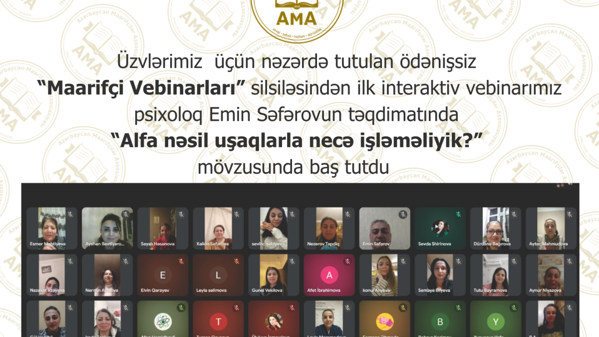 Bu silsiləsindən ilk interaktiv vebinarımız psixoloq Emin Səfərovun təqdimatında “Alfa nəsil uşaqlarla necə işləməliyik?”