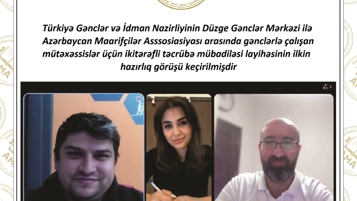 Türkiyə Gənclər və İdman Nazirliyinin Düzge Gənclər Mərkəzi ilə Azərbaycan Maarifçilər Assosiasiyası arasında gənclərlə çalışan mütəxəssislər üçün ikitərəfli təcrübə mübadiləsi layihəsinin ilkin hazırlıq görüşü keçirilib.
